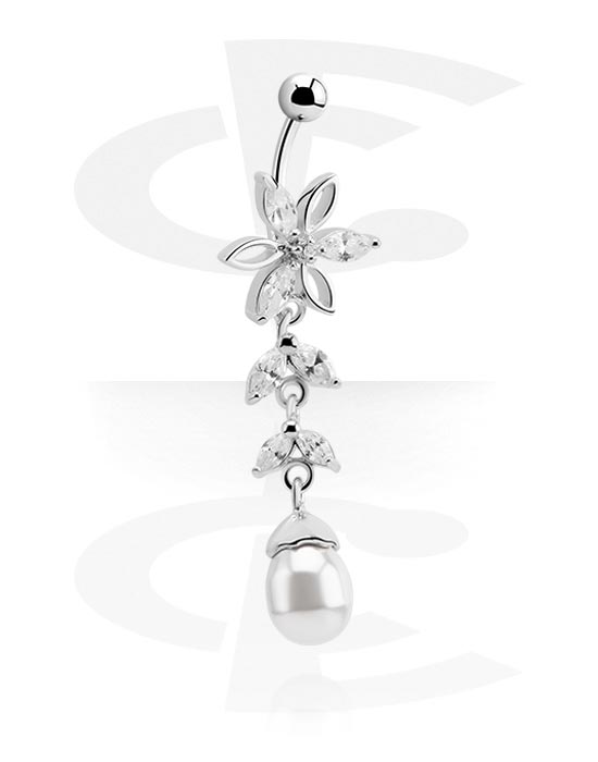 Krúžok do pupku (chirurgická oceľ, strieborná, lesklý povrch) s príveskom kvetina