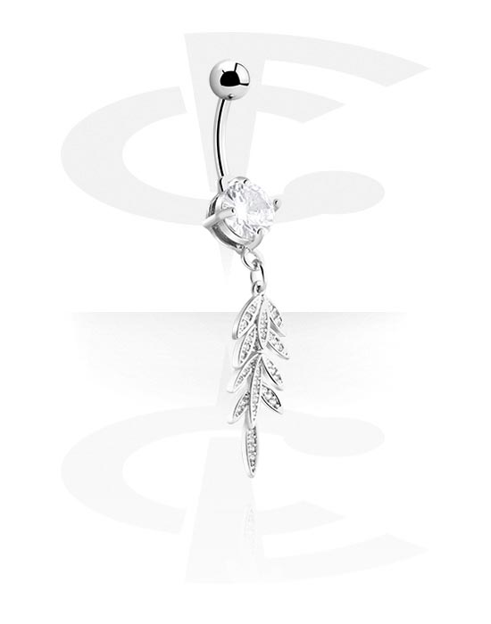 Krúžok do pupku (chirurgická oceľ, strieborná, lesklý povrch) s kryštálové kamene