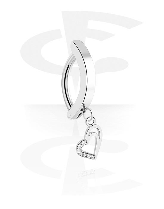 Clicker na pupok (chirurgická oceľ, strieborná, lesklý povrch) s prívesok srdce a kryštálové kamene