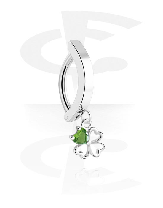 Clicker na pupok (chirurgická oceľ, strieborná, lesklý povrch) s príveskom štvorlístok a Kryštálový kameň