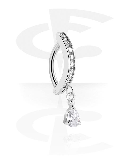Clicker na pupok (chirurgická oceľ, strieborná, lesklý povrch) s Prívesok a kryštálové kamene