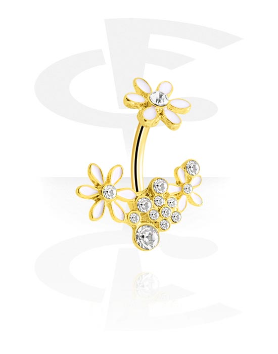Krúžok do pupku (chirurgická oceľ, zlatá, lesklý povrch) s dizajnom kvetina a kryštálové kamene