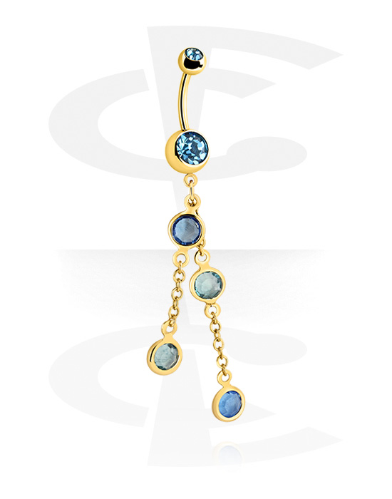 Krúžok do pupku (chirurgická oceľ, zlatá, lesklý povrch) s kryštálové kamene a Prívesok