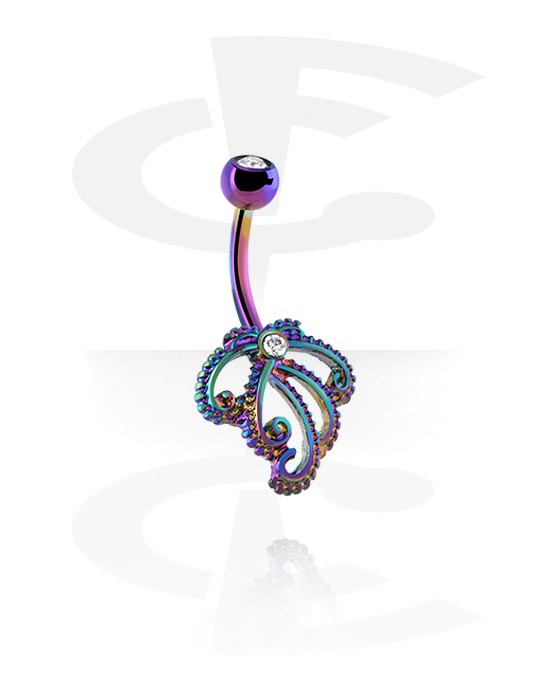Krúžok do pupku (chirurgická oceľ, eloxovaná) s Octopus tentacle design a Kryštálový kameň