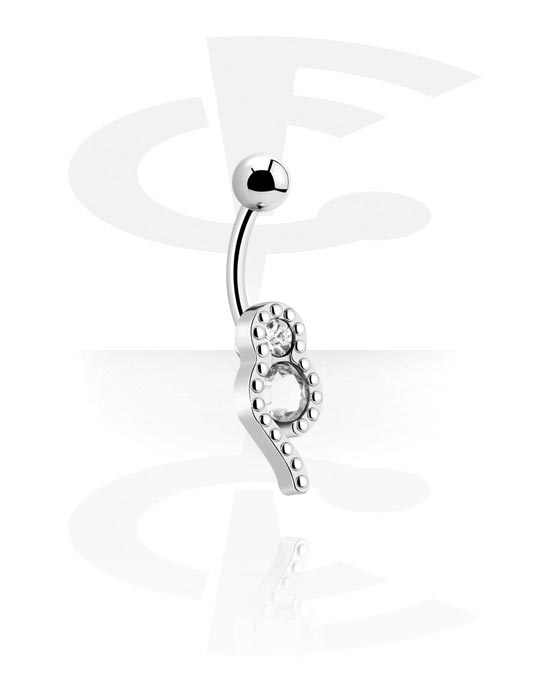 Krúžok do pupku (chirurgická oceľ, strieborná, lesklý povrch) s kryštálové kamene