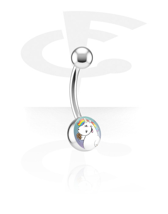 Krúžok do pupku (chirurgická oceľ, strieborná, lesklý povrch) s Motív bucľatý jednorožec