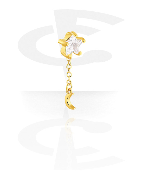 Koncovka pre tyčinky so závitom (pokovovaná mosadz, zlatá) s Krištáľová hviezda a reťaz