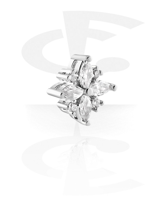 Koncovka pre tyčinky so závitom (pokovovaná mosadz, strieborná) s dizajnom kvetina a kryštálové kamene