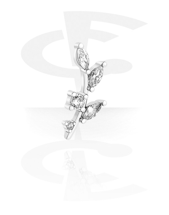 Koncovka pre tyčinky so závitom (pokovovaná mosadz, strieborná) s Motív list a kryštálové kamene