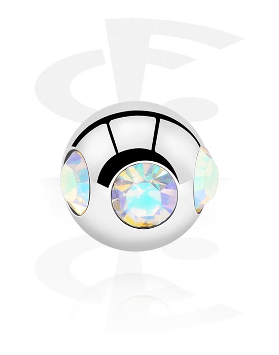 Guľôčka pre tyčinky so závitom (chirurgická oceľ, strieborná, lesklý povrch) s kryštálové kamene