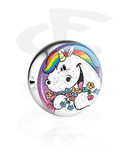 Guľôčka pre krúžky s guľôčkou (chirurgická oceľ, strieborná, lesklý povrch) s Motív bucľatý jednorožec