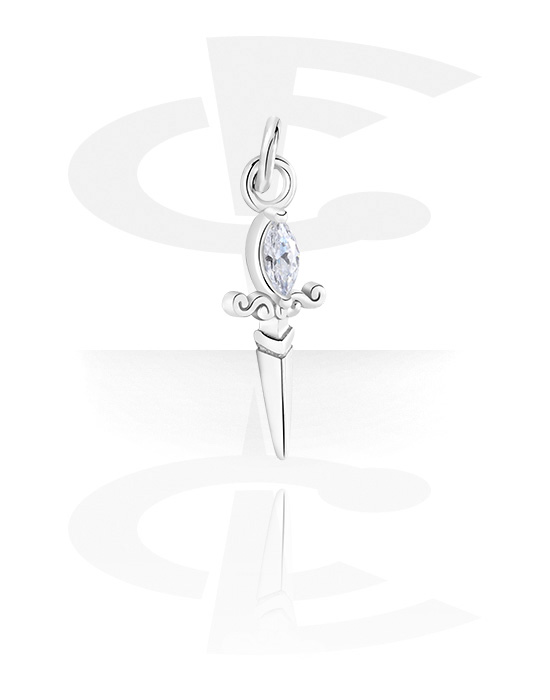 Prívesok (chirurgická oceľ, strieborná, lesklý povrch) s dizajnom meč a Kryštálový kameň