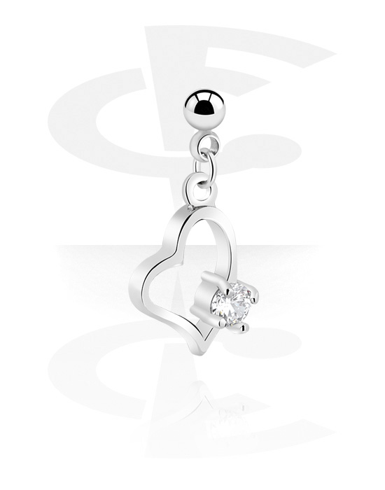 Guľôčka pre 1,2 mm tyčinky s vnútorným závitom (chirurgická oceľ, strieborná, lesklý povrch) s Motív srdca a Kryštálový kameň