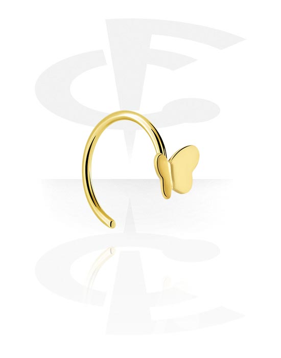 Otvorený krúžok do nosa (chirurgická oceľ, zlatá, lesklý povrch) s Motív motýľ
