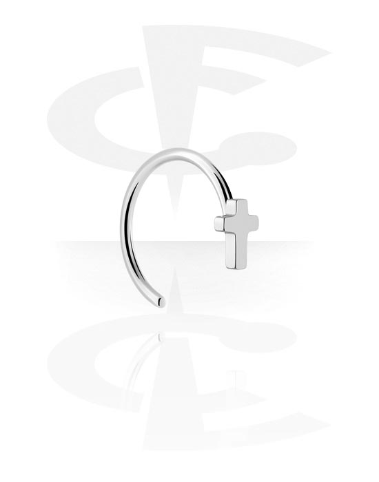 Otvorený krúžok do nosa (chirurgická oceľ, strieborná, lesklý povrch) s Motív kríž
