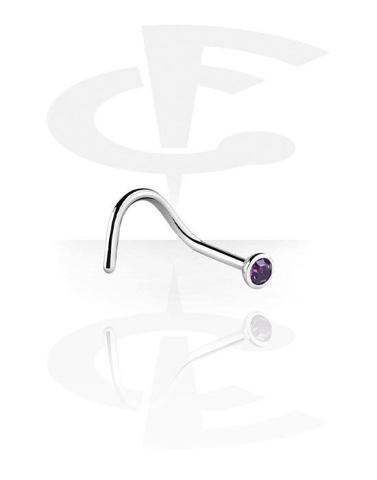 Zahnutá nosovka (chirurgická oceľ, strieborná, lesklý povrch) s Kryštálový kameň