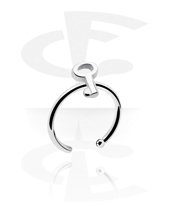Otvorený krúžok do nosa (chirurgická oceľ, strieborná, lesklý povrch) s koncovkou kľúč