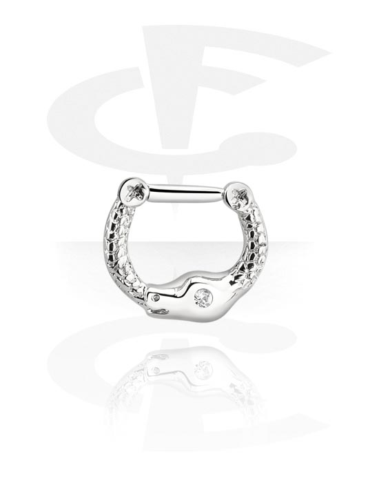 Septum clicker (chirurgická oceľ, strieborná, lesklý povrch) s hadom a Kryštálový kameň