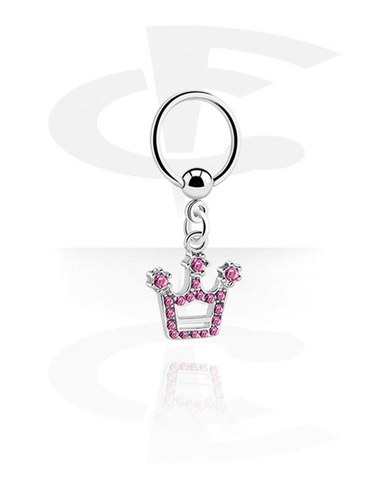 Krúžok s guľôčkou (chirurgická oceľ, strieborná, lesklý povrch) s Prívesok koruna a kryštálové kamene