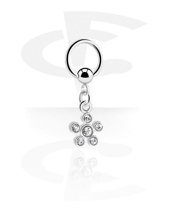 Krúžok s guľôčkou (chirurgická oceľ, strieborná, lesklý povrch) s príveskom kvetina a kryštálové kamene