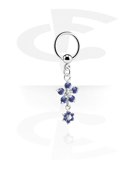 Krúžok s guľôčkou (chirurgická oceľ, strieborná, lesklý povrch) s príveskom kvetina a kryštálové kamene