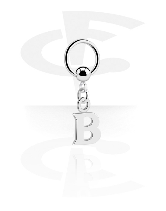 Krúžok s guľôčkou (chirurgická oceľ, strieborná, lesklý povrch) s príveskom s písmenom „B“