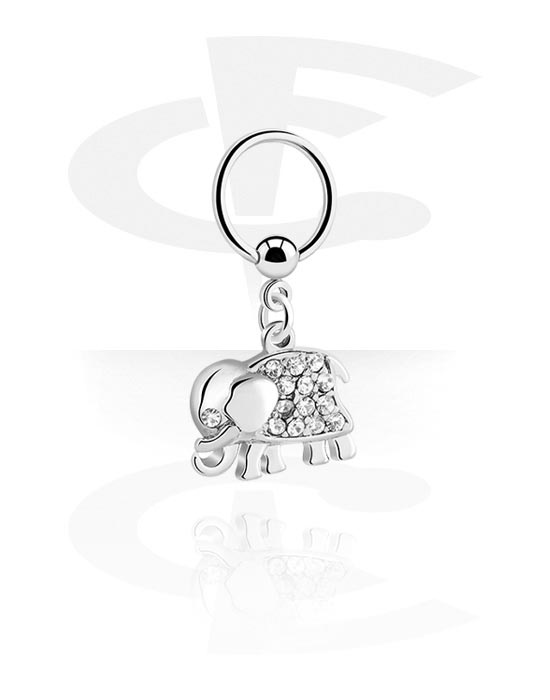 Krúžok s guľôčkou (chirurgická oceľ, strieborná, lesklý povrch) s prívesok slon a kryštálové kamene