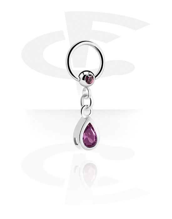 Krúžok s guľôčkou (chirurgická oceľ, strieborná, lesklý povrch) s Kryštálový kameň a Prívesok