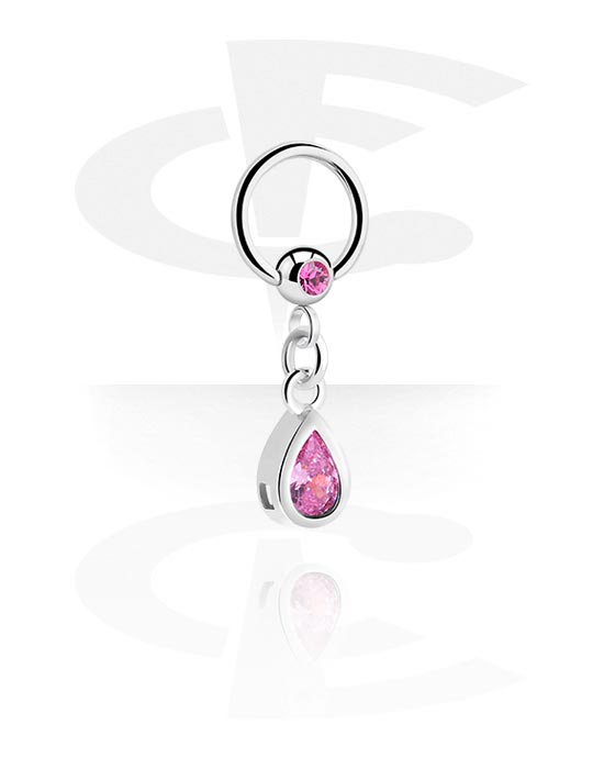 Krúžok s guľôčkou (chirurgická oceľ, strieborná, lesklý povrch) s Kryštálový kameň a Prívesok