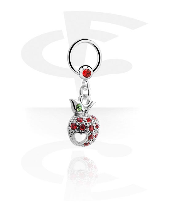 Krúžok s guľôčkou (chirurgická oceľ, strieborná, lesklý povrch) s Prívesok jablko a kryštálové kamene