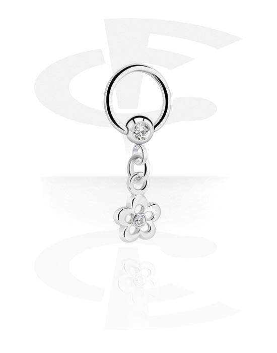 Krúžok s guľôčkou (chirurgická oceľ, strieborná, lesklý povrch) s príveskom kvetina a kryštálové kamene