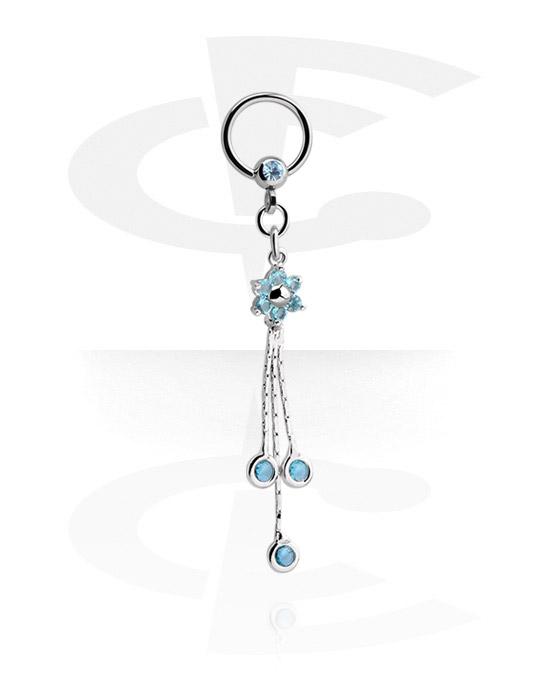 Krúžok s guľôčkou (chirurgická oceľ, strieborná, lesklý povrch) s príveskom kvetina a kryštálové kamene