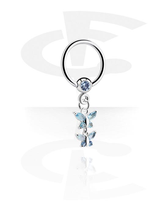 Krúžok s guľôčkou (chirurgická oceľ, strieborná, lesklý povrch) s Kryštálový kameň a Prívesok motýľ