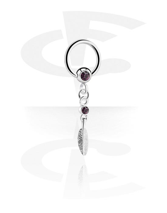 Krúžok s guľôčkou (chirurgická oceľ, strieborná, lesklý povrch) s Kryštálový kameň a prívesok pierko