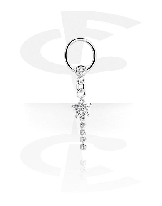 Krúžok s guľôčkou (chirurgická oceľ, strieborná, lesklý povrch) s Kryštálový kameň a Prívesok