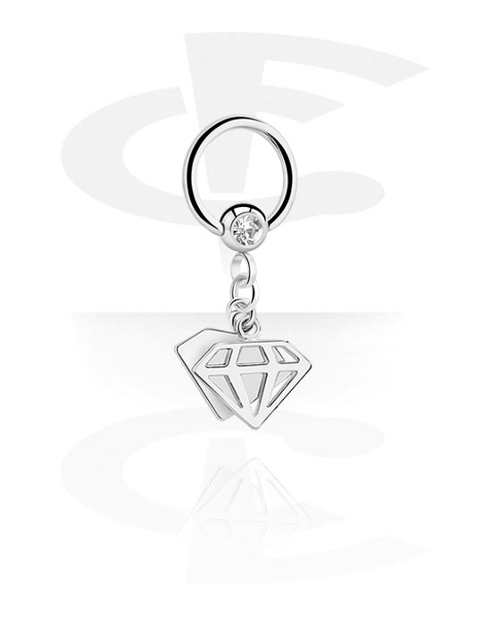 Krúžok s guľôčkou (chirurgická oceľ, strieborná, lesklý povrch) s Kryštálový kameň a Prívesok diamant