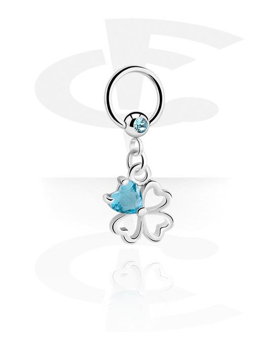 Krúžok s guľôčkou (chirurgická oceľ, strieborná, lesklý povrch) s Kryštálový kameň a príveskom štvorlístok
