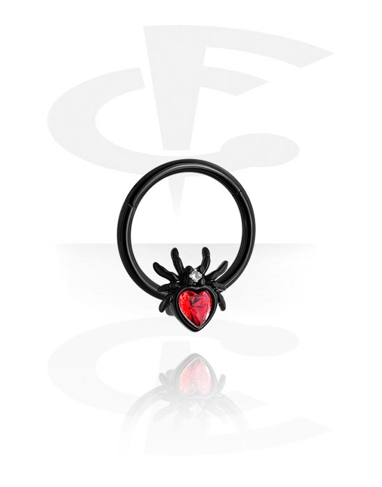 Pírsingový clicker (chirurgická oceľ, čierna, lesklý povrch) s Motív pavúk a kryštálové kamene