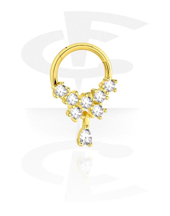 Pírsingový clicker (chirurgická oceľ, zlatá, lesklý povrch) s kryštálové kamene