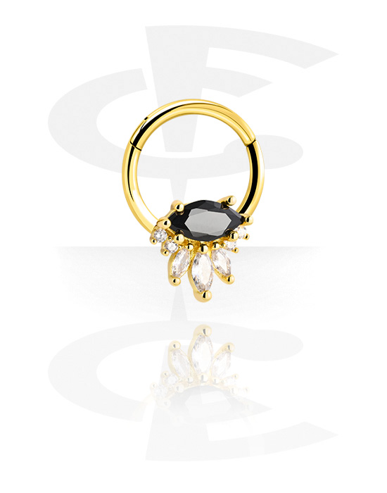 Pírsingový clicker (chirurgická oceľ, zlatá, lesklý povrch) s kryštálové kamene