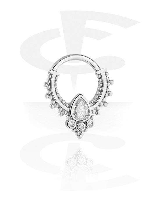 Pírsingový clicker (chirurgická oceľ, strieborná, lesklý povrch) s kryštálové kamene