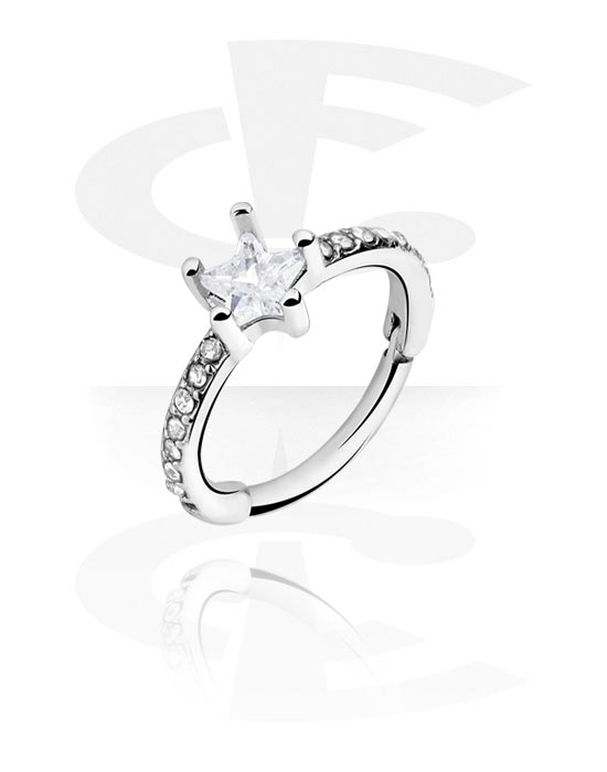 Pírsingový clicker (chirurgická oceľ, strieborná, lesklý povrch) s ozdoba hviezda a kryštálové kamene