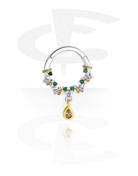 Pírsingový clicker (chirurgická oceľ, strieborná, lesklý povrch) s kryštálovým kamienkom v rôznych farbách