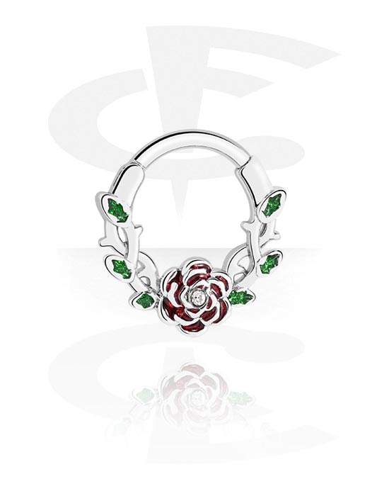 Pírsingový clicker (chirurgická oceľ, strieborná, lesklý povrch) s motív ruže