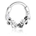 Pírsingový clicker (chirurgická oceľ, strieborná, lesklý povrch) s motív ruže a kryštálové kamene