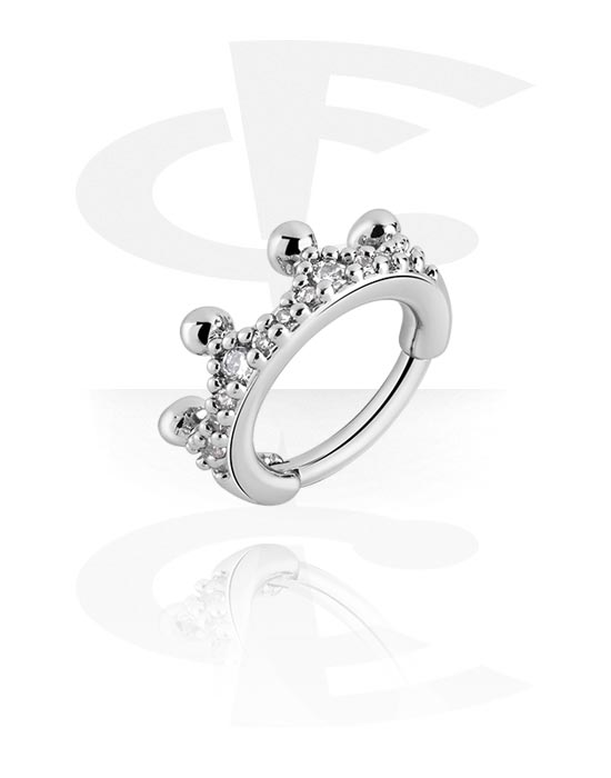 Pírsingový clicker (chirurgická oceľ, strieborná, lesklý povrch) s Motív koruna a kryštálové kamene