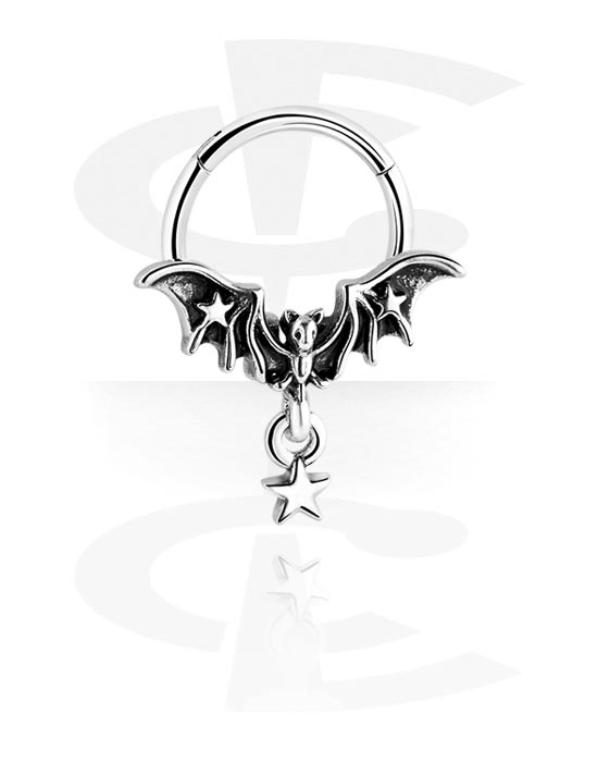 Pírsingový clicker (chirurgická oceľ, strieborná, lesklý povrch) s dizajnom netopier a prívesok hviezda