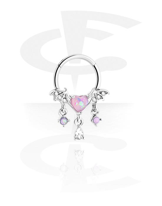 Pírsingový clicker (chirurgická oceľ, strieborná, lesklý povrch) s prívesok srdce a Syntetický opál