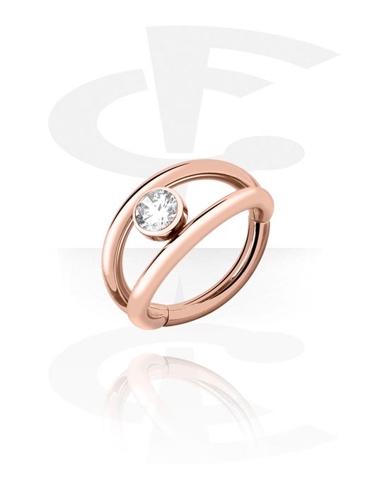 Pírsingový clicker (chirurgická oceľ, ružové zlato, lesklý povrch) s Kryštálový kameň