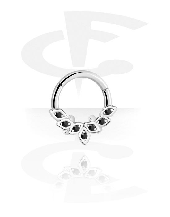 Pírsingový clicker (chirurgická oceľ, strieborná, lesklý povrch) s kryštálové kamene